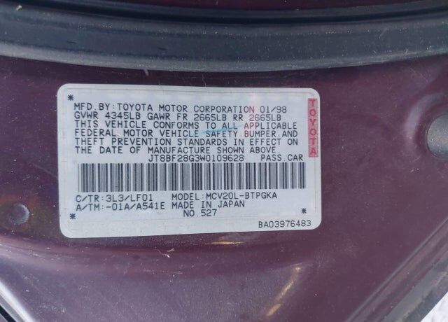 VIN JT8BF28G3W0109628 may have been