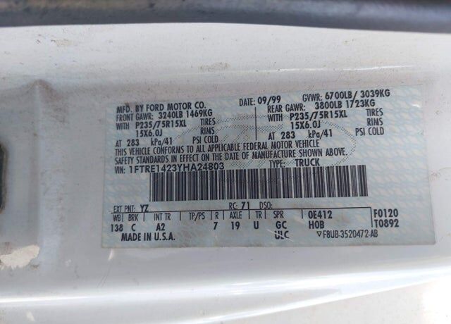 VIN 1FTRE1423YHA24803 may have been