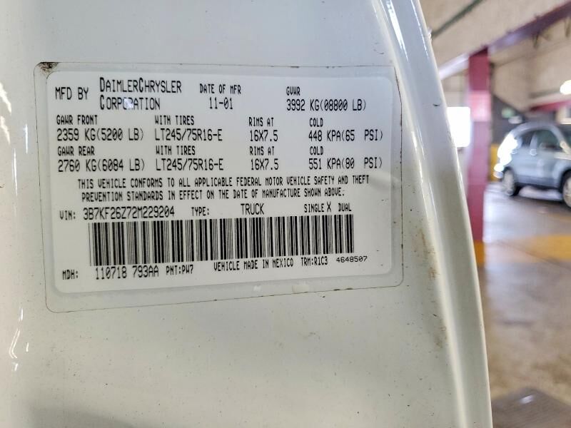 VIN 3B7KF26Z72M229204 may have been