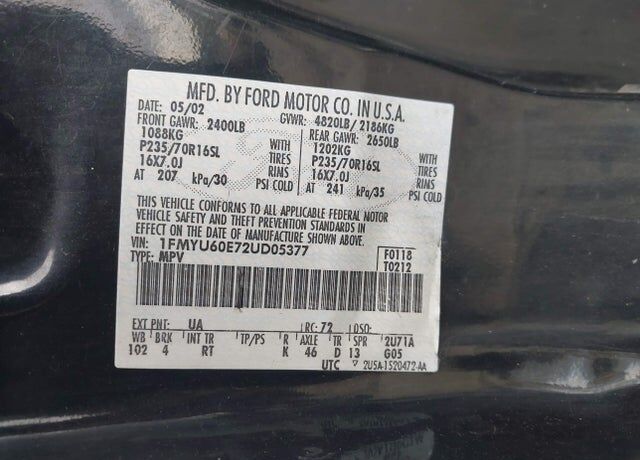 VIN 1FMYU60E72UD05377 may have been