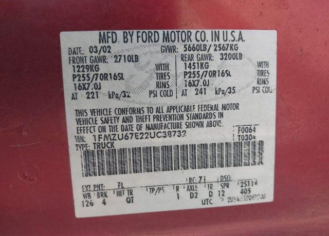 VIN 1FMZU67E22UC38732 may have been