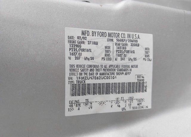 VIN 1FMZU67E62UC05104 may have been