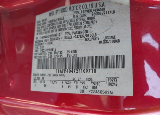 VIN 1FAFP40472F109710 may have been