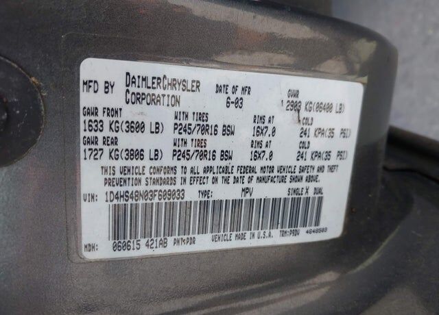 VIN 1D4HS48N03F609033 may have been