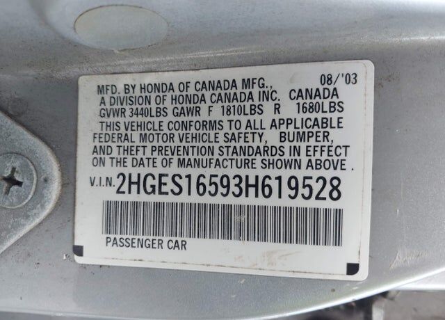 VIN 2HGES16593H619528 may have been