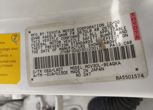 Vehicle Records & Info. Your report VIN JTHBF30G030123015 includes:
