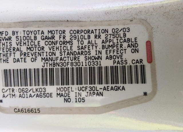 VIN JTHBN30F830110331 may have been