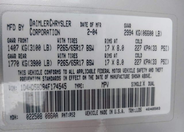 VIN 1D4HD58D84F174545 may have been