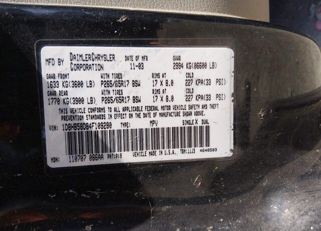 VIN 1D8HB58D84F109280 may have been