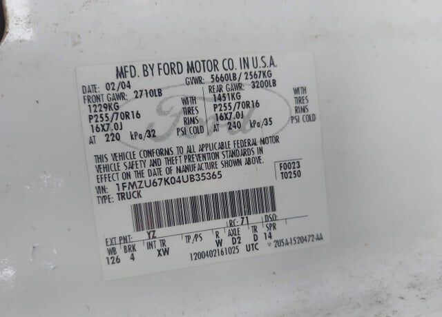 VIN 1FMZU67K04UB35365 may have been