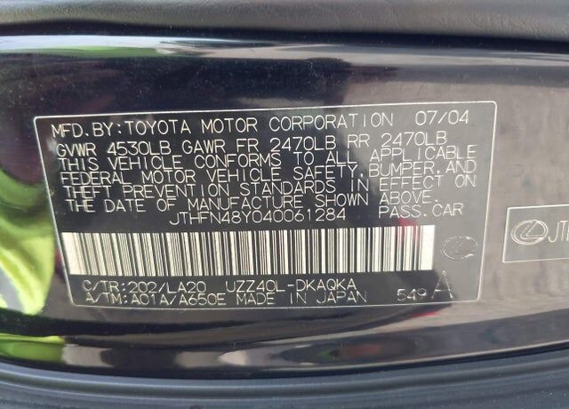VIN JTHFN48Y040061284 may have been