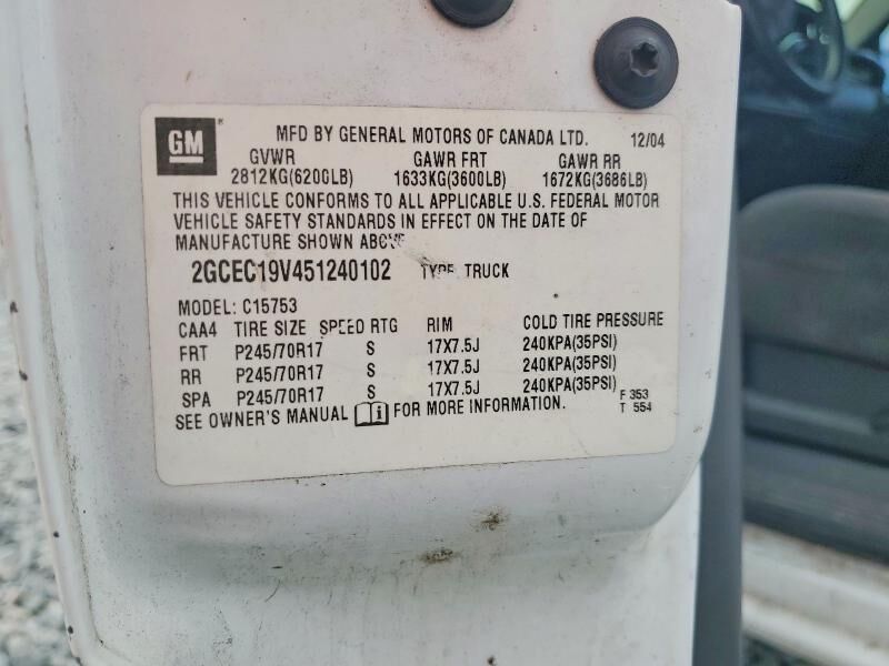 VIN 2GCEC19V451240102 may have been