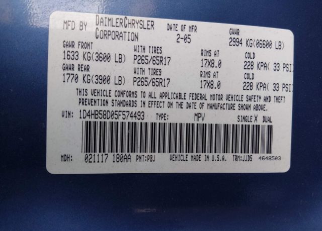VIN 1D4HB58D05F574493 may have been