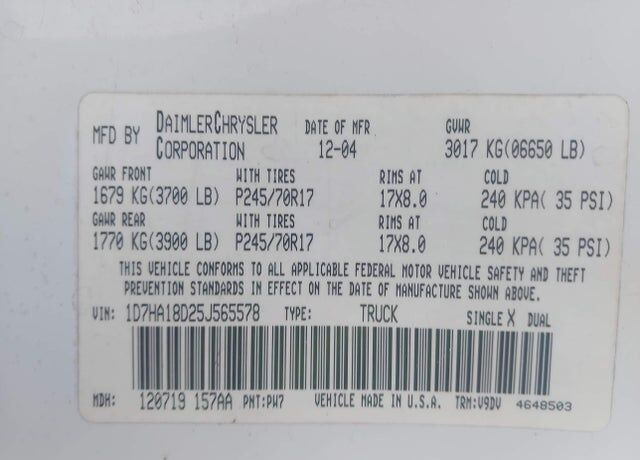 VIN 1D7HA18D25J565578 may have been