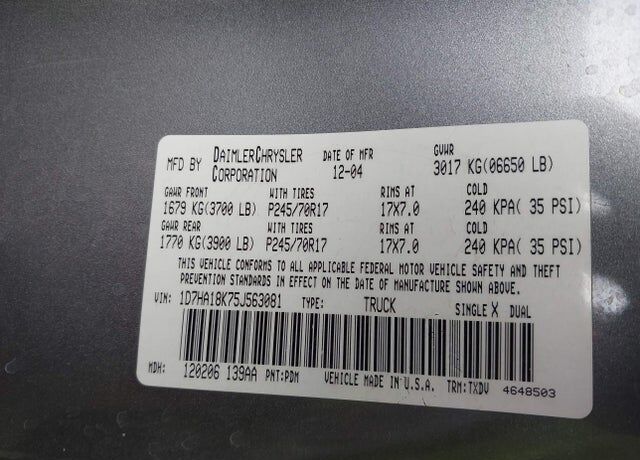 VIN 1D7HA18K75J563081 may have been