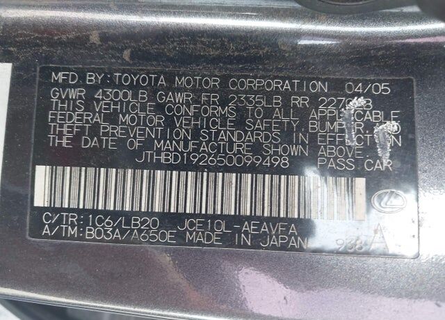 VIN JTHBD192650099498 may have been