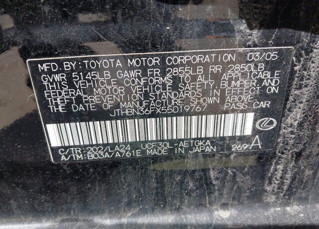 VIN JTHBN36FX55019767 may have been