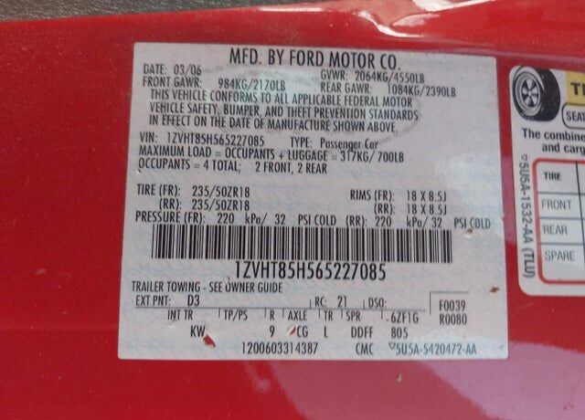 VIN 1ZVHT85H565227085 may have been