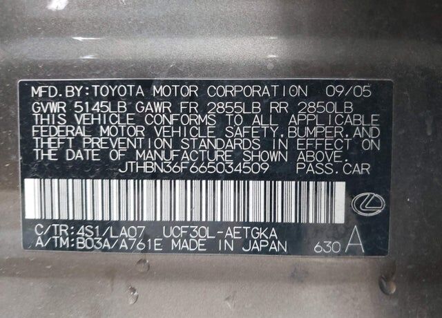 VIN JTHBN36F665034509 may have been