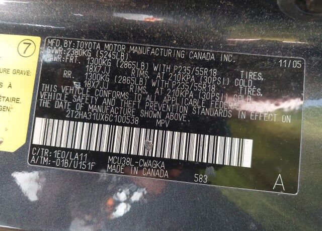 VIN 2T2HA31UX6C100538 may have been