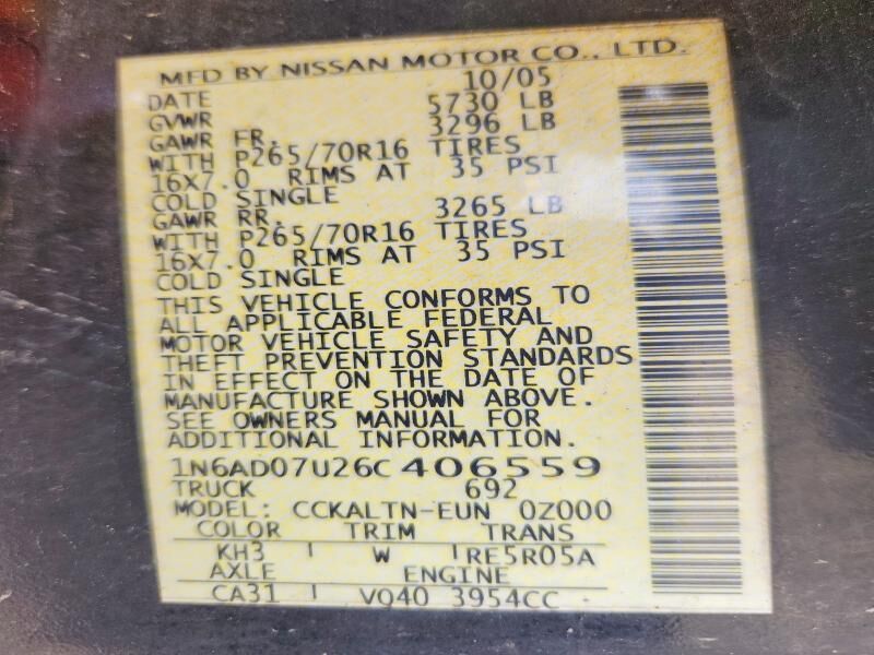 VIN 1N6AD07U26C406559 may have been