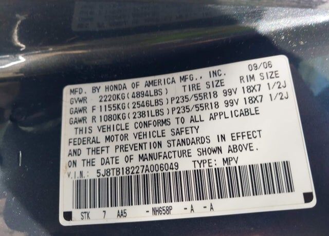 VIN 5J8TB18227A006049 may have been