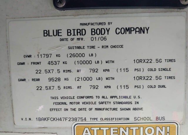 I'm interested in: 2007 BLUE BIRD BB Conventional