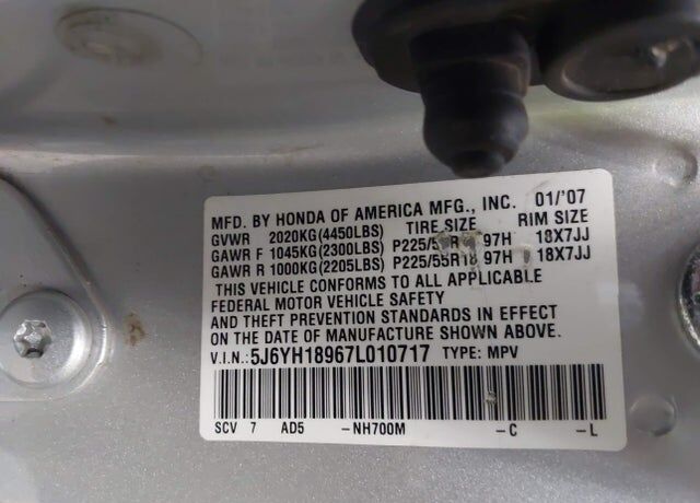 VIN 5J6YH18967L010717 may have been
