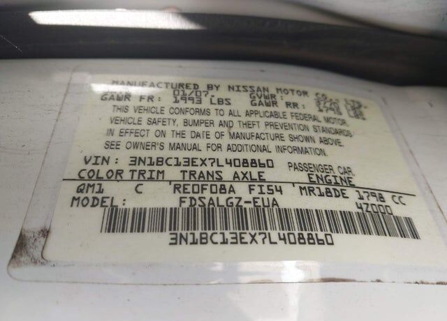 VIN 3N1BC13EX7L408860 may have been