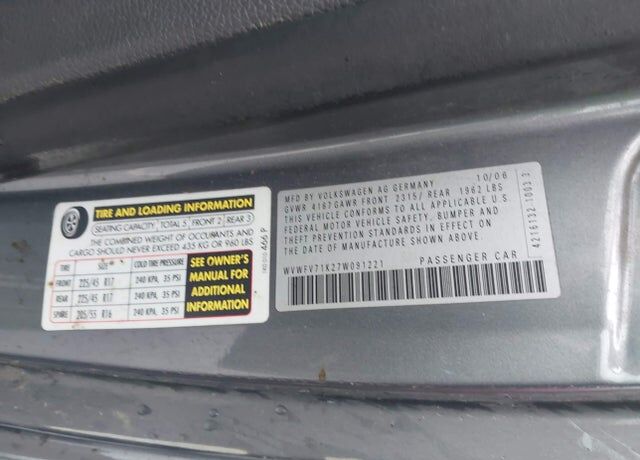 VIN WVWFV71K27W091221 may have been