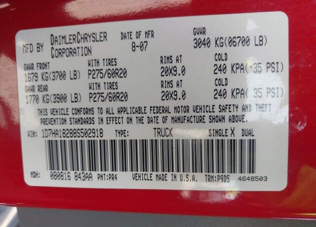 VIN 1D7HA18288S502918 may have been