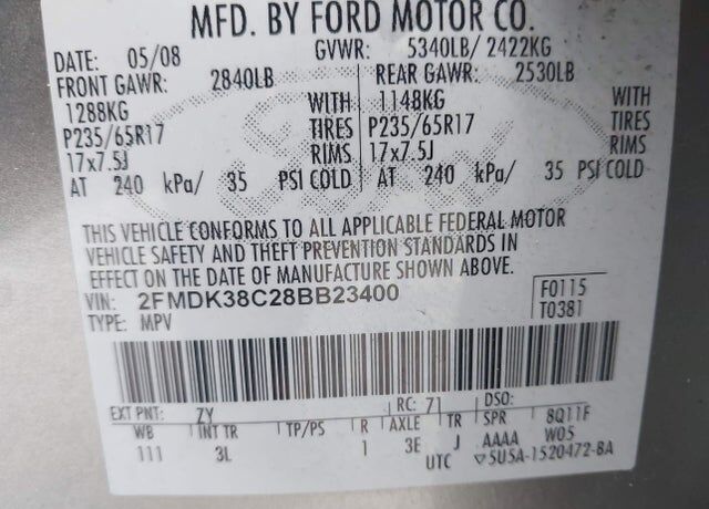 VIN 2FMDK38C28BB23400 may have been