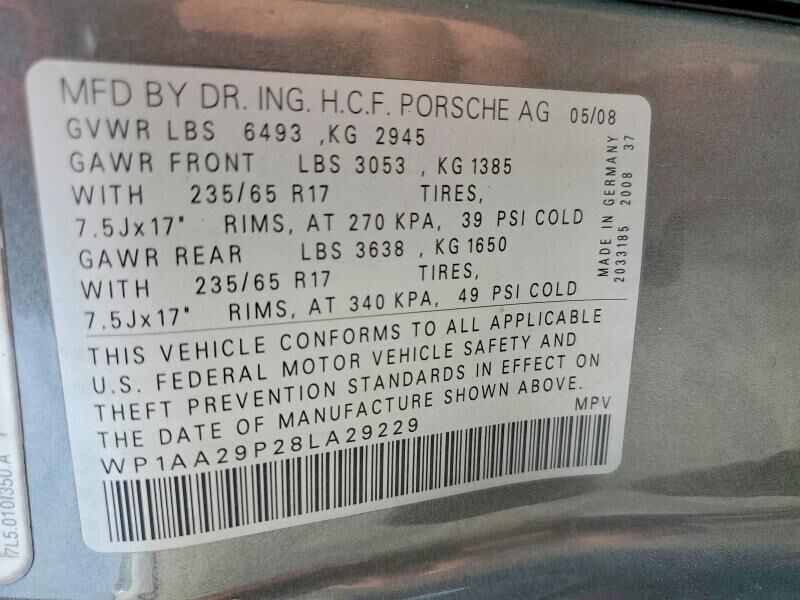 VIN WP1AA29P28LA29229 may have been