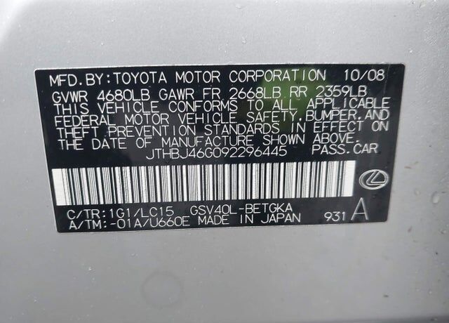 I'm interested in: 2009 LEXUS ES