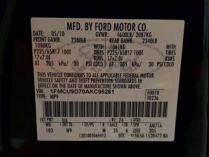 VIN 1FMCU9D70AKC96281 may have been