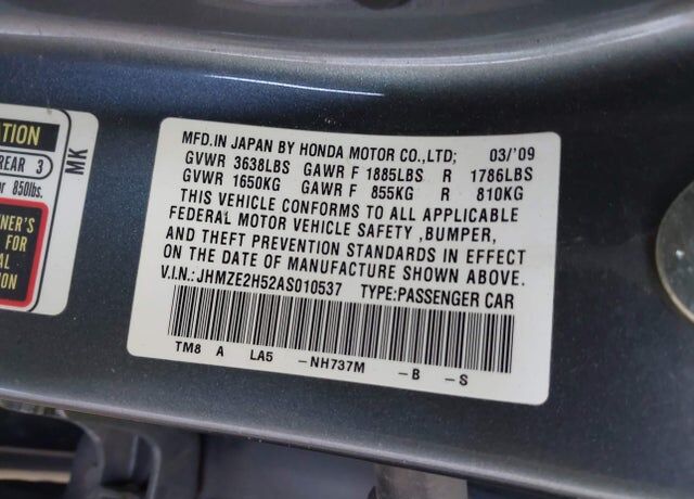 VIN JHMZE2H52AS010537 may have been