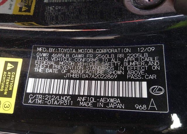 VIN JTHBB1BA7A2022869 may have been