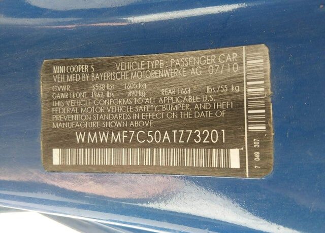 VIN WMWMF7C50ATZ73201 may have been