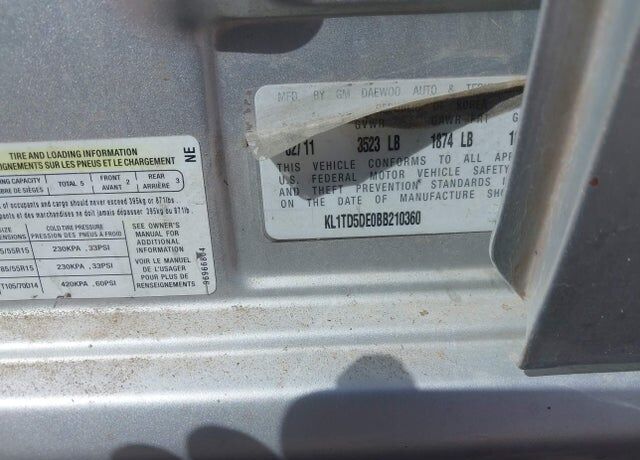 Vehicle Records & Info. Your report VIN KL1TD5DE0BB210360 includes: