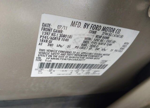 VIN 1FMHK7D87BGA93577 may have been