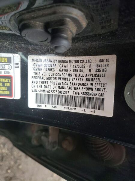 Vehicle Records & Info. Your report VIN JHMFA3F27BS000357 includes: