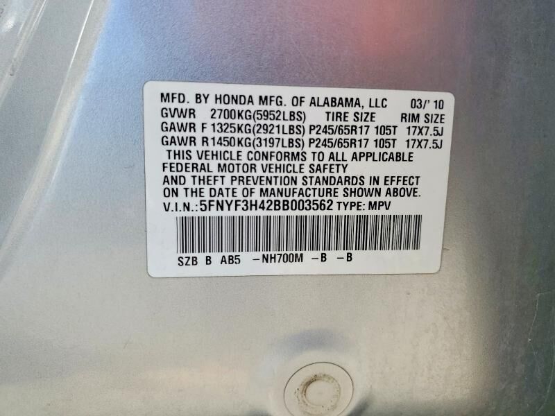 VIN 5FNYF3H42BB003562 may have been