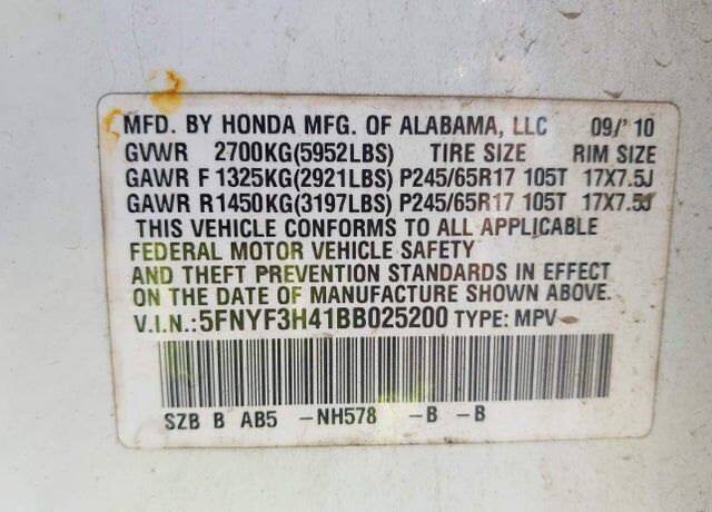VIN 5FNYF3H41BB025200 may have been