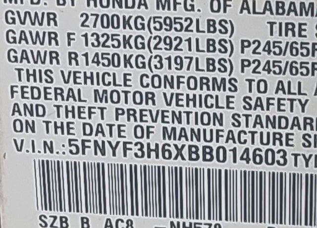 VIN 5FNYF3H6XBB014603 may have been