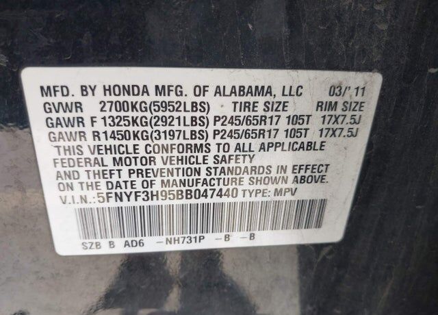 VIN 5FNYF3H95BB047440 may have been