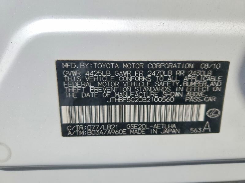 Vehicle Records & Info. Your report VIN JTHBF5C20B2100560 includes: