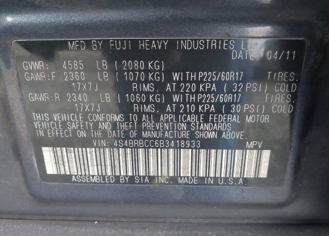 VIN 4S4BRBCC6B3418933 may have been