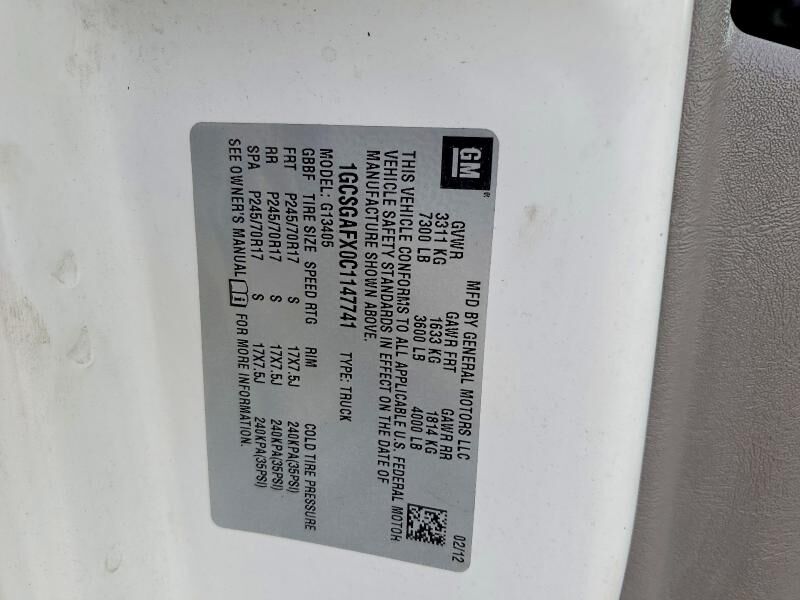 VIN 1GCSGAFX0C1147741 may have been