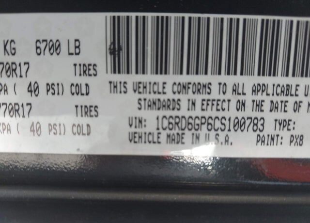 Vehicle Records & Info. Your report VIN 1C6RD6GP6CS100783 includes: