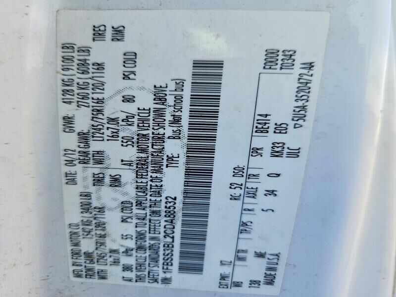 VIN 1FBSS3BL2CDA88532 may have been